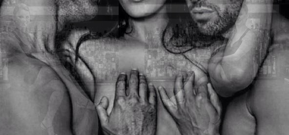 Langsam gleitet Markus Hand zu Larissa Brüsten, streichelt sanft um sie herum. Lars schiebt sich dichter an Larissa heran. Seine Brust schmiegt sich an Larissas Rücken. Sein Mund wandert an Larissas Hals entlang. Er drückt seinen Schoss gegen Larissa Po. Larissas Atem setzt einen Moment aus, sie windet sich in wachsender Erregung zwischen Markus und Lars. Markus Hand gleitet tiefer zwischen sich und Larissa. Er legt sie auf ihren Schamhügel auf. Larissa öffnet ihre Schenkel weiter, gewährt ihm Zugang.