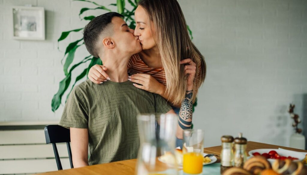 Sanft streichelt er ihr über den Rücken, drückt sie gegen sich. Nicki hebt ihm ihr Gesicht entgegen und küsst Alex sanft und anschmiegsam auf den Mund. Alex löst sich von nickis Lippen und flüstert ihr zu: „Das ist es ein schöner Beginn für einen guten Morgen. Mit so einem Frühstück fängt der Tag gut an.“ Dann küsst er sie von sich aus noch einmal zärtlich. „„Husch unter die Dusche mit Dir, mein kleines geiles Luder.“, setzt er nach und schiebt nicki von seinem Schoß. Als sie sich in Richtung Bad wendet gibt er ihr noch zwei schnelle Klapse auf den Hintern.