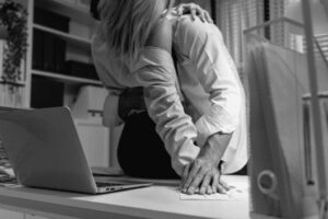 Du sitzt am Schreibtisch bist am Arbeiten und ich komme spontan zu Dir ins Büro. Ich lächele und schließe die Tür, dreh den Schlüssel um. Ich bin gespannt, ob ich in der Lage sein werde, Dich abzulenken. Wie so oft in letzter Zeit arbeitest heute über die Mittagspause durch.
